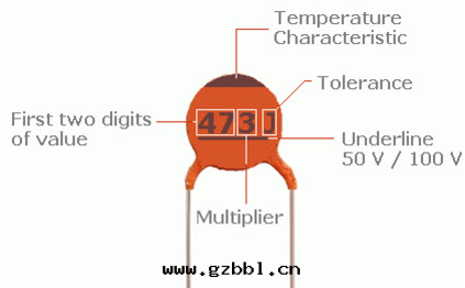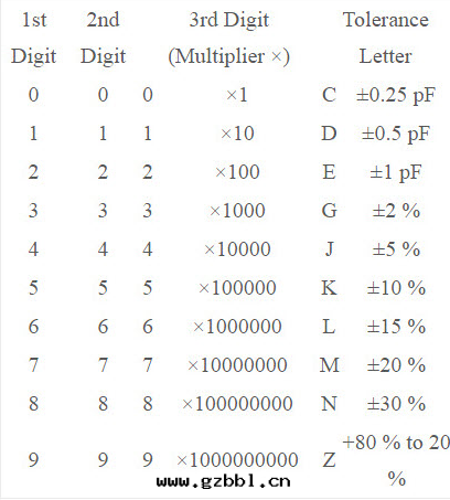 例如(rú),如(rú)果(guǒ)一(yī)个(gè)电容器标(biāo)記(jì)为(wèi)484N,則其(qí)值为(wèi)480000 pF ±30%。
