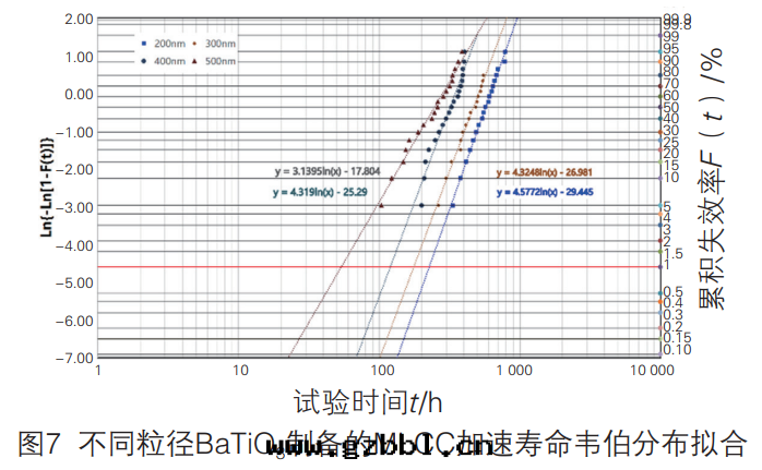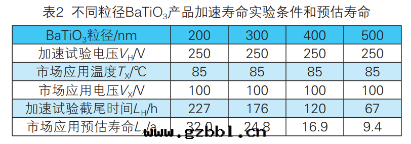 随着所(suǒ)使用(yòng)的(de)BaTiO3晶粒(lì)尺(chǐ)寸(cùn)的(de)減小,産品的(de)實(shí)際使用(yòng)壽命顯著增加。