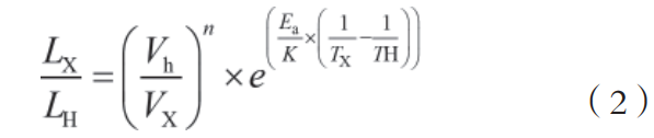 式中(zhōng):LX为(wèi)市(shì)场應(yìng)用(yòng)預估壽命;LH为(wèi)加速試验(yàn)截尾时(shí)間(jiān);VX为(wèi)市(shì)场應(yìng)用(yòng)電(diàn)壓;VH为(wèi)加速試验(yàn)温(wēn)度(dù);TX为(wèi)市(shì)场應(yìng)用(yòng)温(wēn)度(dù);TH为(wèi)加速試验(yàn)温(wēn)度(dù);K为(wèi)玻爾茲曼常數;Ea为(wèi)激活能(néng);n为(wèi)電(diàn)壓加速因(yīn)子。
